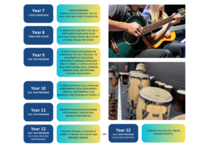 At Wirreanda Secondary School, our music program is shaped by the Department for Education’s Music Strategy. Through a dynamic music program, students enhance thinking and learning skills, improve literacy and numeracy, develop social inclusion, and experience an uplift in wellbeing. We are proud to offer students the opportunity to build passion and skills in music through our engaging programs, which include instrumental tuition, ensemble participation, and performance opportunities such as Music Nights.